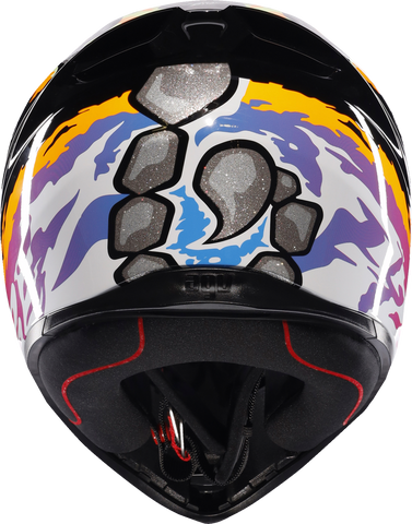 The AGV K1 S Bezzecchi 2023 helmet offers a combination of advanced safety features and rider comfort designed for motorcyclists seeking high-performance gear. Its shell is constructed from durable high resistance thermoplastic, providing excellent impact protection while maintaining a lightweight feel. The helmet features a double D retention system for secure fastening and a collarbone safe profile that enhances safety during aggressive riding maneuvers. Ventilation is optimized with two rear extractors and five front vents, along with adjustable air vents, ensuring continuous airflow to keep riders cool and comfortable on long rides. The integrated spoiler improves aerodynamics, reducing drag and turbulence at high speeds, while the Dry-Comfort fabric interior offers a soft, moisture-wicking surface that is removable and washable for easy maintenance.