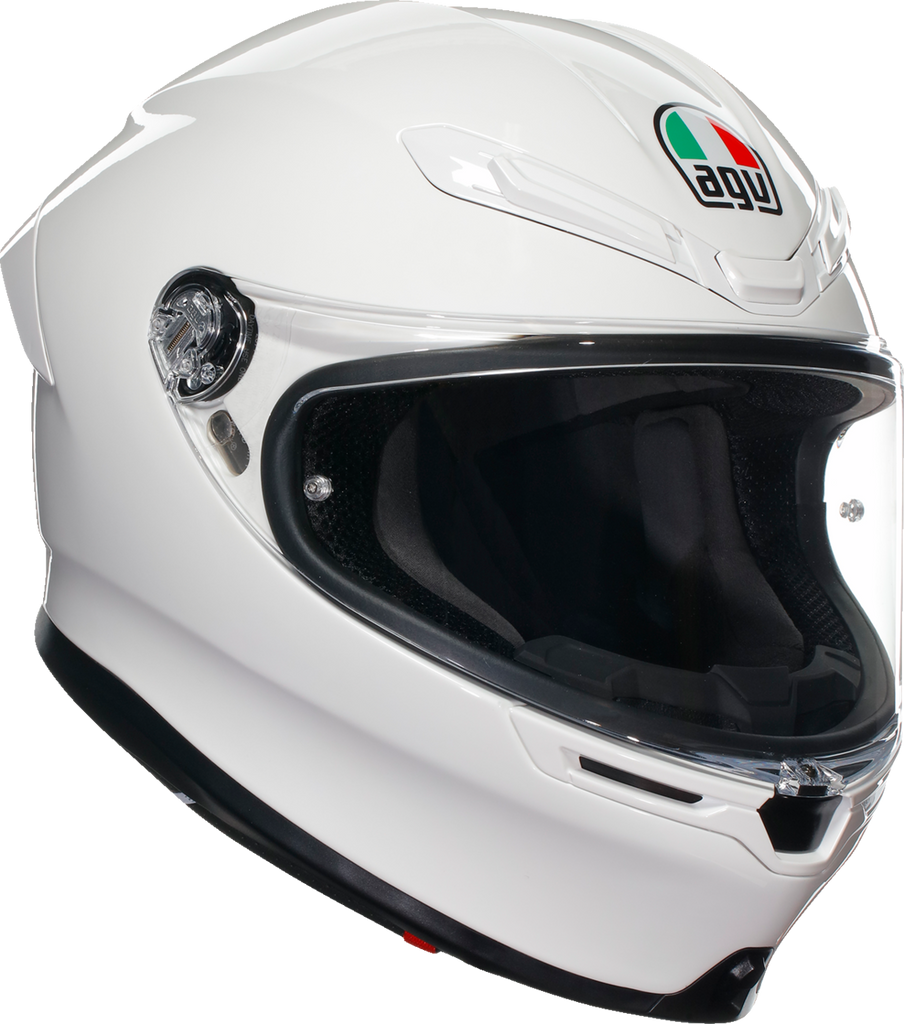 Wind protector included, Double D retention system, Shell, Carbon-Aramid fiber, Collarbone safe profile, 5-density EPS, Ventilation, Adjustable air vents, One wide rear extractor and five front vents, Aerodynamics, Optimized for all riding positions, Integrated spoiler, Shell shape designed to reduce turbulence, Interior, 2Dry: instant sweat absorption, Ritmo fabric cheek pads to facilitate putting on/taking off the helmet, with cheekbone area in Shalimar fabric to ensure stability at high speed, Cheek pads safety release system, Shalimar fabric crown pad for a soft and gentle touch, Embracing neck roll profile, Fit especially designed to allow wearing glasses, Ready for AGV ARK communication system, Ritmo fabric neck roll and synthetic leather with high abrasion resistance and water-resistant properties, Microsense: premium skin comfort, Reflective inserts