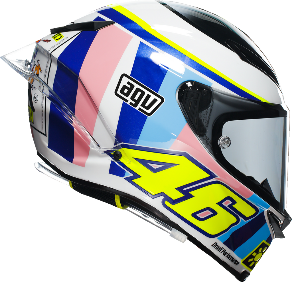 Accessories include: hydration system, interior customization kit (top crown pad, rear crown pad and cheek pads), tear-off kit and vent covers, Titanium Double D retention system, Shell, 100% carbon fiber, Shell and 5-density expanded polystyrene (EPS) structure designed to minimize rotational accelerations (FIM homologated), Collarbone safe profile, Ventilation, Two rear extractors, Five front vents, Metal air vents and extractors, Aerodynamics, Detachable PRO Spoiler, Race suit fitment, Interior, 2Dry: instant sweat absorption, 360? Adaptive fit, 3-piece adaptable crown pad fit, Cheek pads safety release system, Shalimar fabric cheek pads for soft and stable fit even at high speed, Elastic and breathable microfiber crown pad, Embracing neck roll profile, Microsense: premium skin comfort, Breathable neck roll fabric with elastic and waterproof inserts, No stitches in sensitive areas