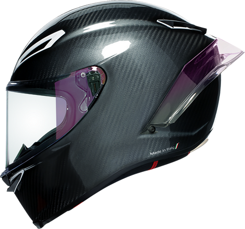 Accessories include: hydration system, interior customization kit (top crown pad, rear crown pad and cheek pads), tear-off kit, earplugs, and vent covers, Titanium Double D retention system, Shell, Shell and 5-density expanded polystyrene (EPS) structure designed to minimize rotational accelerations (FIM homologated), 100% carbon fiber with silver-green micalized finish, Collarbone safe profile, Ventilation, Two rear extractors and five front vents, Metal air vents and extractors, Aerodynamics, Detachable magenta iridium PRO Spoiler, Race suit fitment, Interior, Shalimar fabric cheek pads for soft and stable fit even at high speed, 3-piece adaptable crown pad fit, 2Dry: instant sweat absorption, 360? Adaptive fit, Cheek pads safety release system, Elastic and breathable microfiber crown pad, Breathable neck roll fabric with elastic and waterproof inserts, Microsense: premium skin comfort, Embracing neck roll profile, Sanitized, providing antibacterial protection, No stitches in sensitive areas