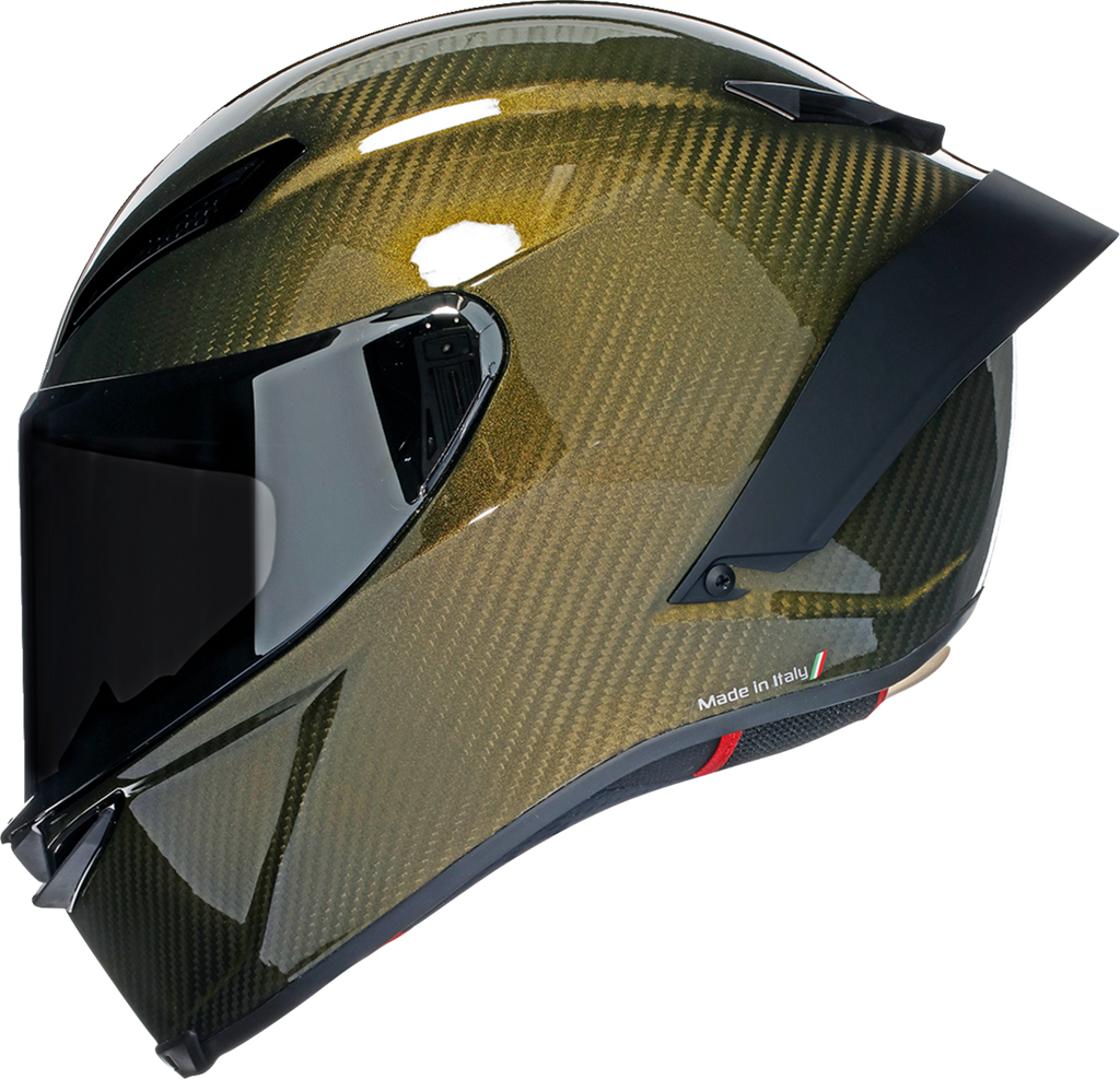 Titanium Double D retention system, Accessories include: hydration system, interior customization kit (top crown pad, rear crown pad and cheek pads), tear-off kit and vent covers, Shell, 100% carbon fiber, Shell and 5-density expanded polystyrene (EPS) structure designed to minimize rotational accelerations (FIM homologated), Collarbone safe profile, Ventilation, Two rear extractors and five front vents, Metal air vents and extractors, Aerodynamics, Detachable PRO Spoiler, Race suit fitment, Interior, 360? Adaptive fit, 2Dry: instant sweat absorption, 3-piece adaptable crown pad fit, Cheek pads safety release system, Shalimar fabric cheek pads for soft and stable fit even at high speed, Elastic and breathable microfiber crown pad, Embracing neck roll profile, Microsense: premium skin comfort, Breathable neck roll fabric with elastic and waterproof inserts, Removable and washable interiors, No stitches in sensitive areas