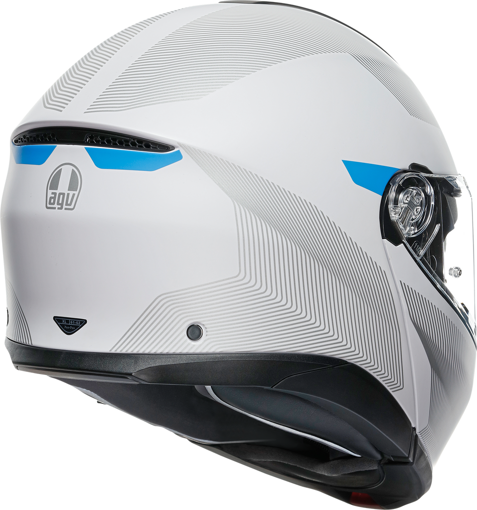 Shell , 5-density EPS, Chin guard opening system designed to prevent accidental opening, Metal chin guard block system ensures the double homologation P/J, Carbon-Aramid-Fiberglass, Collarbone safe profile, Ventilation, Adjustable air vents, One rear extractor and four front vents, Aerodynamics, 2-step chin guard mechanism designed to optimize aerodynamics in jet configuration, Shell shape designed to maximize aerodynamic performance, Interior, 2Dry: instant sweat absorption, Fresh and fluid Ritmo fabric cheek pads * interchangeable between all sizes, Crown pad: Shalimar fabric crown pad for a soft and gentle touch, Fit especially designed to allow wearing glasses, Embracing neck roll profile, Microsense: premium skin comfort, Ritmo fabric and synthetic leather neck roll with high abrasion resistance and water-resistant properties, Ready for AGV INSYDE communication system, Reflective inserts, Removable and washable interiors, Removable nose guard and wind protector