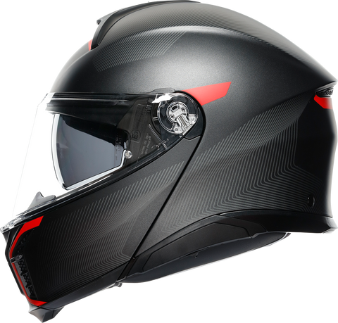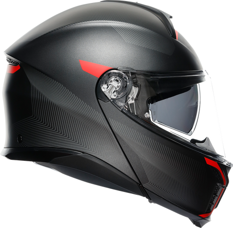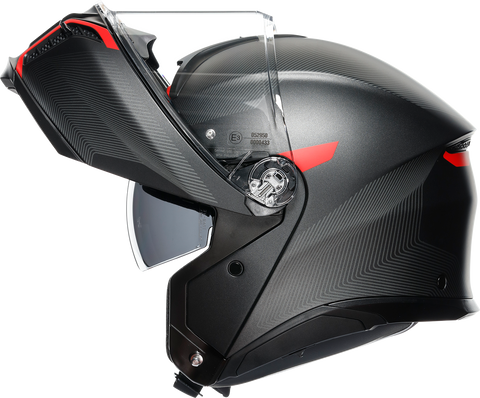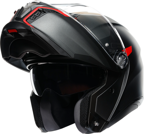 Shell , 5-density EPS, Chin guard opening system designed to prevent accidental opening, Metal chin guard block system ensures the double homologation P/J, Carbon-Aramid-Fiberglass, Collarbone safe profile, Ventilation, Adjustable air vents, One rear extractor and four front vents, Aerodynamics, 2-step chin guard mechanism designed to optimize aerodynamics in jet configuration, Shell shape designed to maximize aerodynamic performance, Interior, 2Dry: instant sweat absorption, Fresh and fluid Ritmo fabric cheek pads * interchangeable between all sizes, Crown pad: Shalimar fabric crown pad for a soft and gentle touch, Fit especially designed to allow wearing glasses, Embracing neck roll profile, Microsense: premium skin comfort, Ritmo fabric and synthetic leather neck roll with high abrasion resistance and water-resistant properties, Ready for AGV INSYDE communication system, Reflective inserts, Removable and washable interiors, Removable nose guard and wind protector