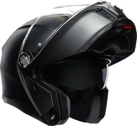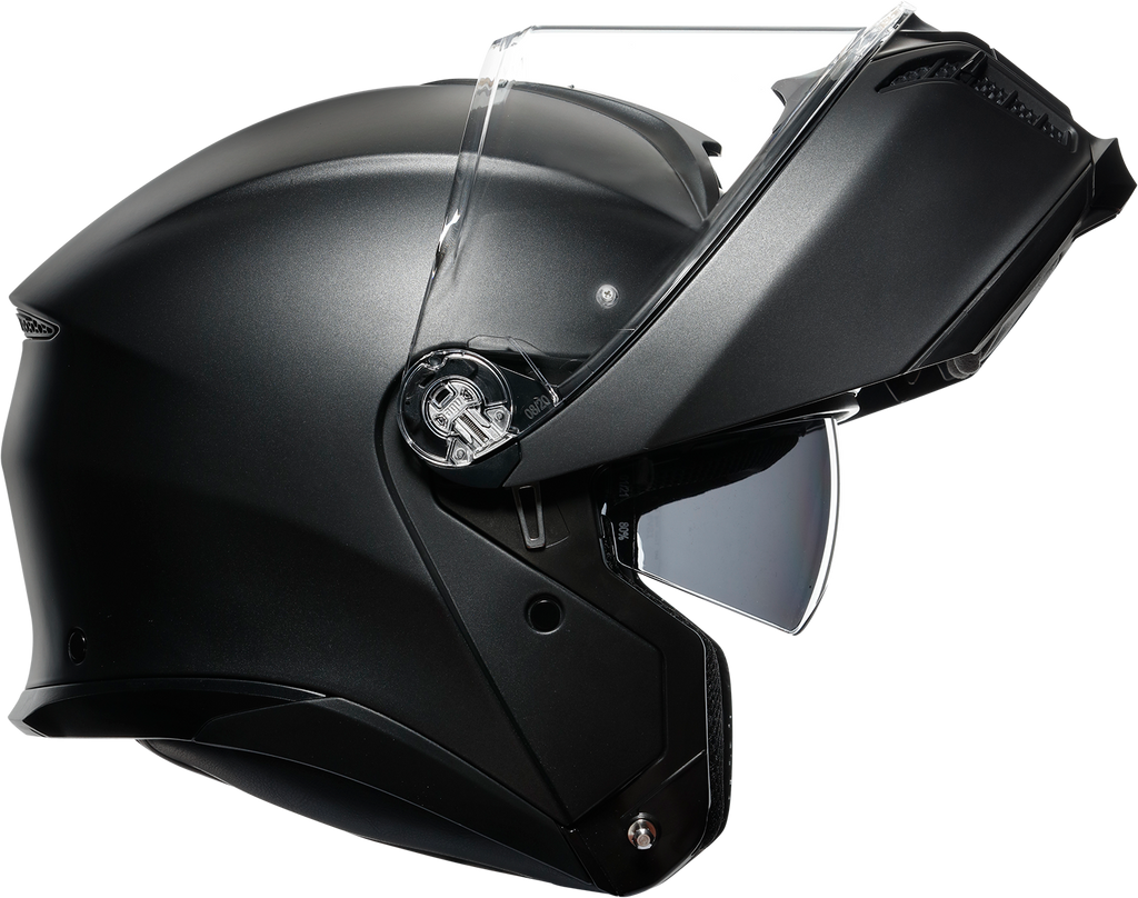 Chin guard opening system designed to prevent accidental opening, Shell shape designed to maximize aerodynamic performance and to have 0 dynamic weight at 80 mph (130 km/h), 5-density EPS Carbon-aramid-fiberglass shell, Collarbone safe profile, Metal chin guard block system ensures the double homologation P/J, Ventilation * four front vents, adjustable air vents and one rear extractor, 2-step chin guard mechanism designed to optimize aerodynamics in jet configuration, Removable and washable interiors, Ritmo fabric, fresh and fluid cheek pads, Removable wind protector, Removable nose guard, Shalimar fabric crown pad for a soft and gentle touch, Reflective inserts, Fit especially designed to allow wearing glasses, Sanitized, antibacterial protection, 2Dry instant sweat absorption, Embracing neck roll profile, Ritmo fabric and synthetic leather neck roll with high abrasion resistance and water-resistant properties, Microsense premium skin comfort interior, Ready for AGV INSYDE communication system, Cheek pads interchangeable between all sizes, Micro-opening system, Anti-scratch, optic class 1 visor with a 85? vertical field of view and a 190? horizontal field of view, Integrated anti-scratch sun visor, removable without using tools