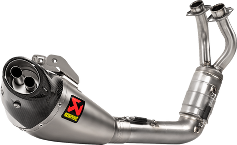 A complete high-quality stainless steel exhaust system made with close attention to detail, Unique design enables it to obtain the maximum output for each specific model of motorcycle while significantly reducing overall weight for top performance in everyday riding or even in the most challenging races, Headpipes/collector/link pipe are made of stainless steel, Muffler sleeve constructed from carbon fiber, End cap constructed from carbon fiber, Catalytic converter is included within the system and no re-mapping required