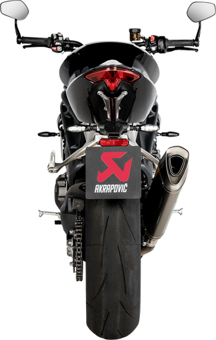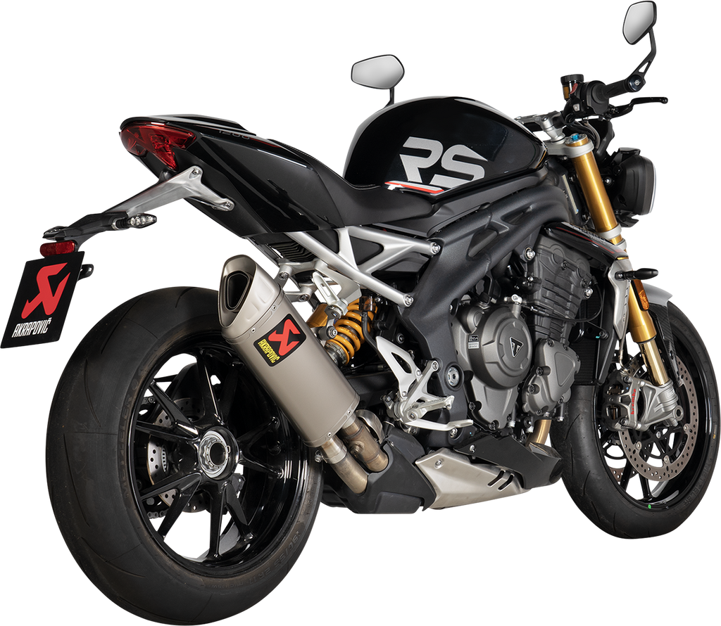 The lightweight titanium muffler outer sleeve and end cap are sandblasted and coated for increased durability and an attractive appearance, It weighs over 20% (1.4 kg) less than the stock exhaust due to the use of race-inspired materials, and it has a full and deep Akrapovic sound, tuned to the bike*s characteristic engine, The simple plug and play installation means no remapping is required