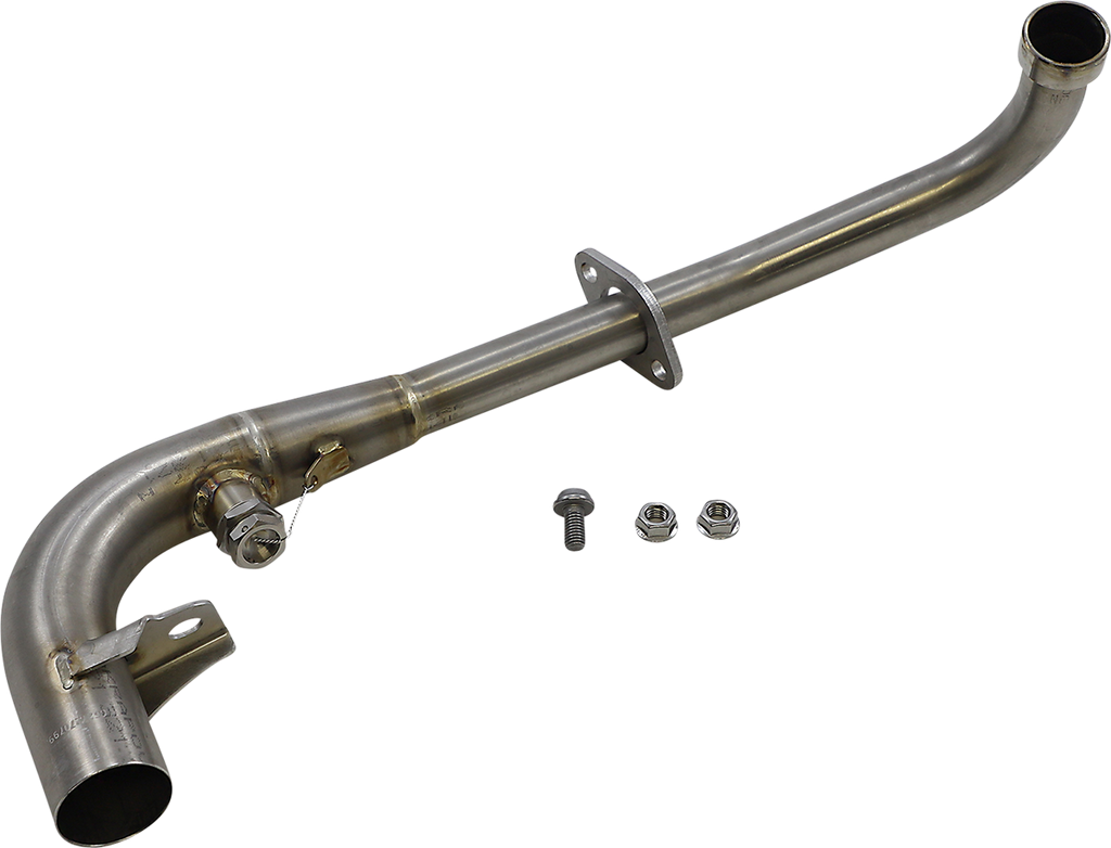 The AKRAPOVIC Head Pipe E-H125R2 is designed for motorcycle enthusiasts seeking a high-quality exhaust component that offers straightforward installation and optimal performance. Constructed from durable stainless steel, this head pipe ensures long-lasting durability and resistance to corrosion, making it suitable for demanding riding conditions. It features a convenient thread for lambda sensors, allowing for precise tuning when modifying engine electronics. The head pipe is designed without a catalytic converter, making it ideal for closed course competition or track use where emissions regulations are not a concern. Its high-grade construction and engineering make it a reliable upgrade for riders aiming to improve exhaust flow and overall engine efficiency. The E-H125R2 is compatible with various motorcycle models, providing a seamless fit and performance enhancement. This component is perfect for those looking to optimize their motorcycle's power output and sound quality, especially in racing or track environments. Easy plug-and-play installation means you can upgrade your exhaust system without complex modifications or remapping, saving valuable time and effort. Whether you're a competitive racer or an enthusiast wanting to improve your motorcycle's performance, this stainless steel head pipe from AKRAPOVIC offers a high-performance solution that meets professional standards.