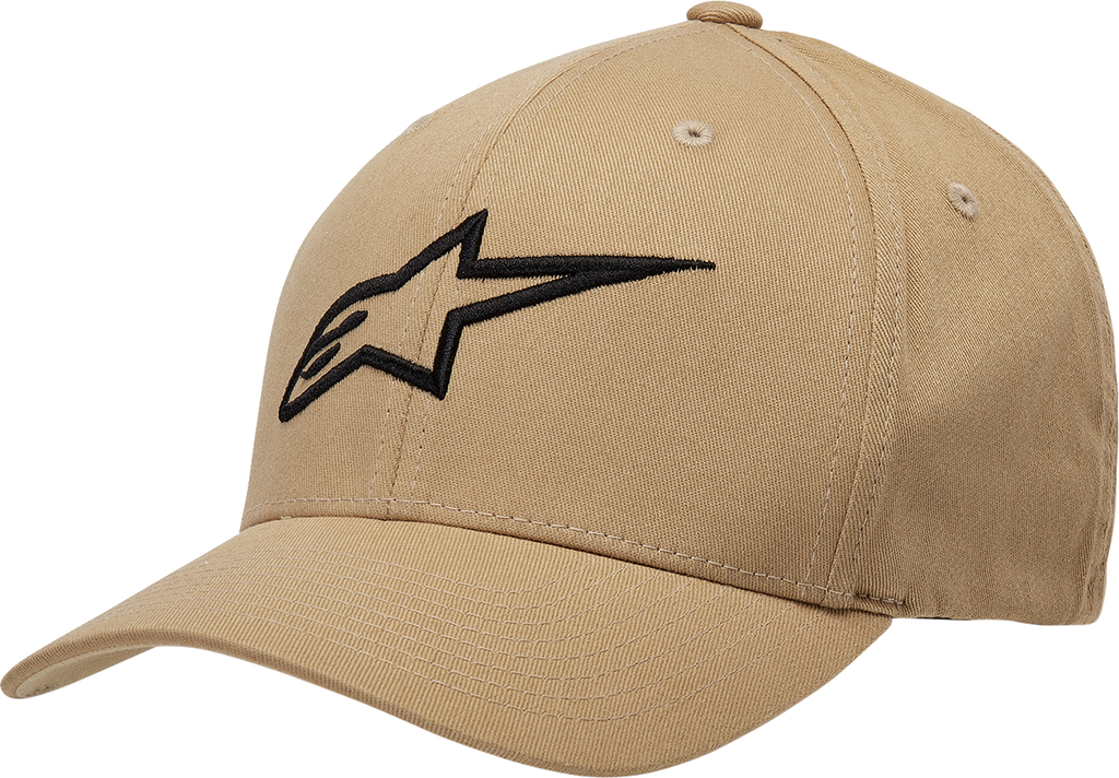 Ageless Curve Hat - Sand/Black - Small/Medium 98% Cotton / 2% Polyurethane, Flex back stretch twill fabric with 3D embroidered logo on front of hat, Curve bill with structured crown, Internal and back labeling