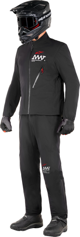 AMT Storm Gear Drystar?XF Jacket has been engineered to deliver optimal protection and comfort in extreme wet weather riding conditions, and is constructed with Alpinestars Drystar?XF technology for the ultimate in waterproof and breathable performance, Drystar?XF (Xtra Flow) takes Alpinestars innovative Drystar? membrane to the next level and delivers 50% more breathability performance in dry conditions compared to a standard membrane, bringing significant benefits for rider comfort, both in wet and dry conditions. With special attention paid to any areas where water can penetrate, the direct fusion of the outer shell material with the waterproof membrane effectively stops the water right at the outside layer of the garment, before it can penetrate the inside layer, providing the rider with complete protection from wet weather conditions, Full circumference zippered waist connector allows the jacket to be connected to the AMT Storm Gear Drystar?XF Pant, effectively creating a one-piece rain suit for even greater wet weather performance in extreme conditions, Elongated back for extended coverage, Fixed mesh liner for enhanced rider comfort, High-end stretch construction for maximum rider comfort, especially over longer distances, Two-layer Ripstop construction for enhanced durability, Seam-sealed front zipper for maximum protection against water , Elasticated cuffs and a shock cord adjustable waist for an optimized fit, Elasticated and contoured collar for optimal protection against water ingress and rider comfort, Single zippered waterproof pocket on the front for the safe and secure storage of essentials, Packable design allows the jacket to be stowed away, and comes with a carrying pocket