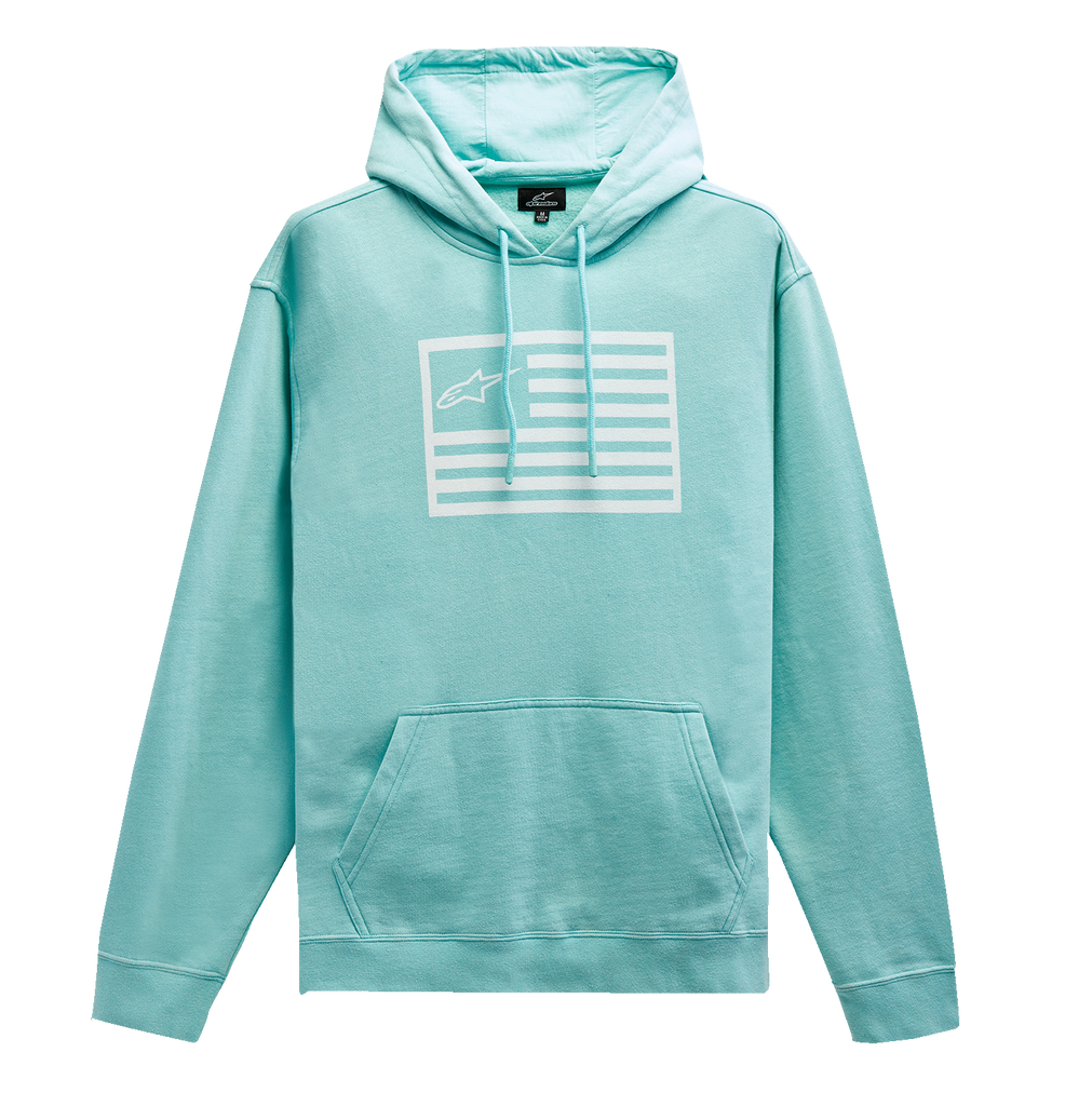 Artifact Hoodie - Light Aqua - XL 80% Cotton / 20% Polyester, Fleece with potassium garment wash, Front flag logo graphic and Jersey hood lining, dipped drawcord tips, rib cuffs and hem, Internal main label and external label branding