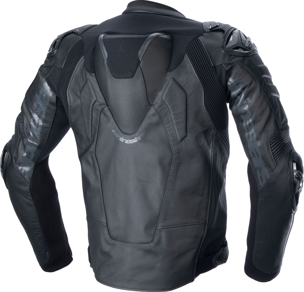 Atem v5 Leather Jacket is a racing jacket engineered and optimized for sports bike riders, with race-derived features, technology and materials including a dedicated *Race* fit with pre-curved arms for maximum riding performance, Alpinestars Flex Plus *Race* leather throughout, race-proven protection on the shoulders and elbows, while delivering optimum levels of rider comfort, Alpinestars composite stretch technology, A-CS? Plus, stretch panels on the torso for exceptional breathability, comfort, and freedom of movement, as well as delivering a lighter weight and a lower profile than a traditional leather accordion panel (the A-CS? Plus panels are about nine percent lighter than leather panels). Another key advantage of using A-CS? Plus is superior stretch performance; A-CS? Plus has about 30 percent elongation, and offers an increase in tear resistance of 300% compared to HRSF (Hyper Resistant Stretch Fiber), and an increase in cut resistance by 600% versus leather, RIDEKNIT? engineered inner arms; combines high abrasion and tear resistance with high flexibility, comfort and mechanical stretch while still delivering superior comfort and high levels of breathability, Flex Plus bovine *Race* leather construction is 10% lighter than regular bovine leather, while delivering 80% more adaptability for superior freedom of movement, an ultra-adaptive race fit, and enhanced abrasion and tear resistance, Extensive technical stretch panels under the arms, on the inner arms, and around the neck for an optimized fit, 3D pattern body mapping for an enhanced race fit, Dual density DFS RR shoulder and elbow protectors for superior friction control, GP elbow armor for additional impact protection in a key area, Nucleon Flex Plus shoulder armor for superior impact protection, Tech-Air? 5 and Tech-Air? 3 ready, Low profile sports collar construction for rider comfort and aerodynamic performance, Hook and loop neck closure with large built-in flap for a secure closure, Ergonomic hook and loop cuffs with a zippered sleeve on the forearm for ease of use, Streamlined speed hump for enhanced aerodynamic performance and enhanced ventilation, Hump is equipped with a chamber to accommodate hydration pouch, Waterproof inner compartment for safe and secure storage of valuables, Two zippered external side pockets for practical and secure storage, Mesh interior comfort liner with pockets to accommodate a back protector or a split chest protector, 3/4 waist zip for a secure connection with Alpinestars pants, Cut longer on the back for greater coverage in the riding position
