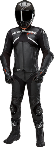 Atem v5 Leather Jacket is a racing jacket engineered and optimized for sports bike riders, with race-derived features, technology and materials including a dedicated *Race* fit with pre-curved arms for maximum riding performance, Alpinestars Flex Plus *Race* leather throughout, race-proven protection on the shoulders and elbows, while delivering optimum levels of rider comfort, Alpinestars composite stretch technology, A-CS? Plus, stretch panels on the torso for exceptional breathability, comfort, and freedom of movement, as well as delivering a lighter weight and a lower profile than a traditional leather accordion panel (the A-CS? Plus panels are about nine percent lighter than leather panels). Another key advantage of using A-CS? Plus is superior stretch performance; A-CS? Plus has about 30 percent elongation, and offers an increase in tear resistance of 300% compared to HRSF (Hyper Resistant Stretch Fiber), and an increase in cut resistance by 600% versus leather, RIDEKNIT? engineered inner arms; combines high abrasion and tear resistance with high flexibility, comfort and mechanical stretch while still delivering superior comfort and high levels of breathability, Flex Plus bovine *Race* leather construction is 10% lighter than regular bovine leather, while delivering 80% more adaptability for superior freedom of movement, an ultra-adaptive race fit, and enhanced abrasion and tear resistance, Extensive technical stretch panels under the arms, on the inner arms, and around the neck for an optimized fit, 3D pattern body mapping for an enhanced race fit, Dual density DFS RR shoulder and elbow protectors for superior friction control, GP elbow armor for additional impact protection in a key area, Nucleon Flex Plus shoulder armor for superior impact protection, Tech-Air? 5 and Tech-Air? 3 ready, Low profile sports collar construction for rider comfort and aerodynamic performance, Hook and loop neck closure with large built-in flap for a secure closure, Ergonomic hook and loop cuffs with a zippered sleeve on the forearm for ease of use, Streamlined speed hump for enhanced aerodynamic performance and enhanced ventilation, Hump is equipped with a chamber to accommodate hydration pouch, Waterproof inner compartment for safe and secure storage of valuables, Two zippered external side pockets for practical and secure storage, Mesh interior comfort liner with pockets to accommodate a back protector or a split chest protector, 3/4 waist zip for a secure connection with Alpinestars pants, Cut longer on the back for greater coverage in the riding position