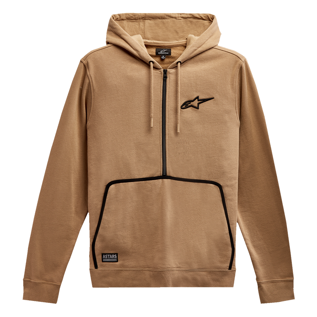 Bound Hoodie - Sand - Large 80% Cotton / 20% Polyester, Exposed zipper and bound pocket, Front Alpinestars chest logo 3D embroidery, Jersey hood lining, dipped drawcord tips, rib cuffs and hem, Internal main label and external label branding
