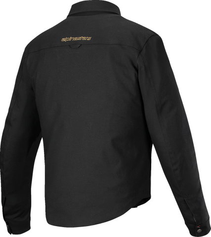 The Alpinestars Bryon WR Overshirt is designed for riders seeking a blend of classic workwear style and modern protective features. Crafted from durable waxed canvas with a water-resistant finish, this overshirt provides reliable weather resistance while maintaining a rugged, sophisticated appearance. Its stretch fabric allows for unrestricted movement, making it comfortable for all-day riding and daily wear. The inclusion of Nucleon Flex Plus shoulder and elbow armor offers discreet and effective impact protection, ensuring safety without sacrificing the minimalistic aesthetic. The overshirt's design incorporates traditional workwear elements such as herringbone tape on the pockets for easy access, a metal D-ring for attaching keys or tools, and a back loop for hanging. The collar features hidden snap buttons for a clean look, complemented by a front zip with a protective lip that enhances durability and functionality. The removable thermal vest adds versatility, providing extra warmth during colder rides. Storage is ample with two large chest cargo pockets secured with hidden snap buttons, and two discreet zippered side pockets, ideal for essentials. Premium details like triple-stitching, Alpinestars-branded zipper pullers, snaps, embroidered and woven logos, and decorative tape accents elevate the overshirt's contemporary, utility-inspired aesthetic. Designed with a slightly longer back for better coverage while riding, the Bryon WR Overshirt combines practicality with style, making it an excellent choice for motorcyclists who value durability, comfort, and modern safety features. Its stretch outer shell enhances mobility, while thoughtful features such as snap buttons on sleeve cuffs and gussets ensure an optimized fit. Whether tackling cold weather or rainy commutes, this overshirt delivers dependable performance with a polished, functional look.