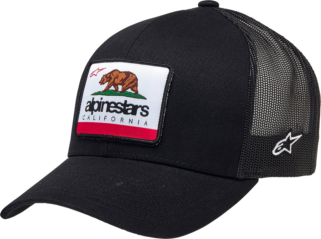 Cali 2.0 Hat - Black - One Size Twill front and poly mesh back fabric, Woven Merrow patch, Internal and back labeling, Content: 60% Cotton / 40% Polyester