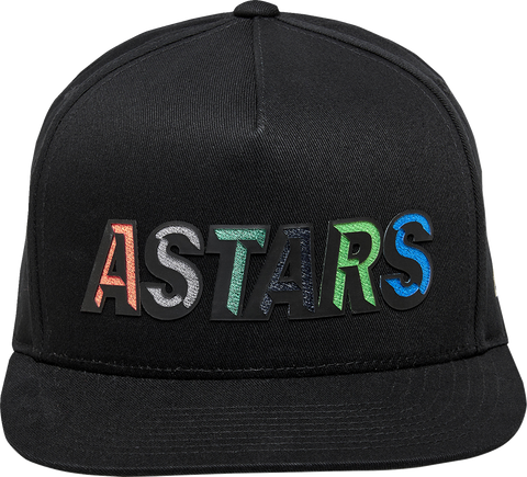 Candy Hat - Black - One Size Flat bill cap with Astars embroidery and logo on side of hat with structured crown, Ripstop tiger camo main fabric, Flag patch thick patch, Internal and back labeling