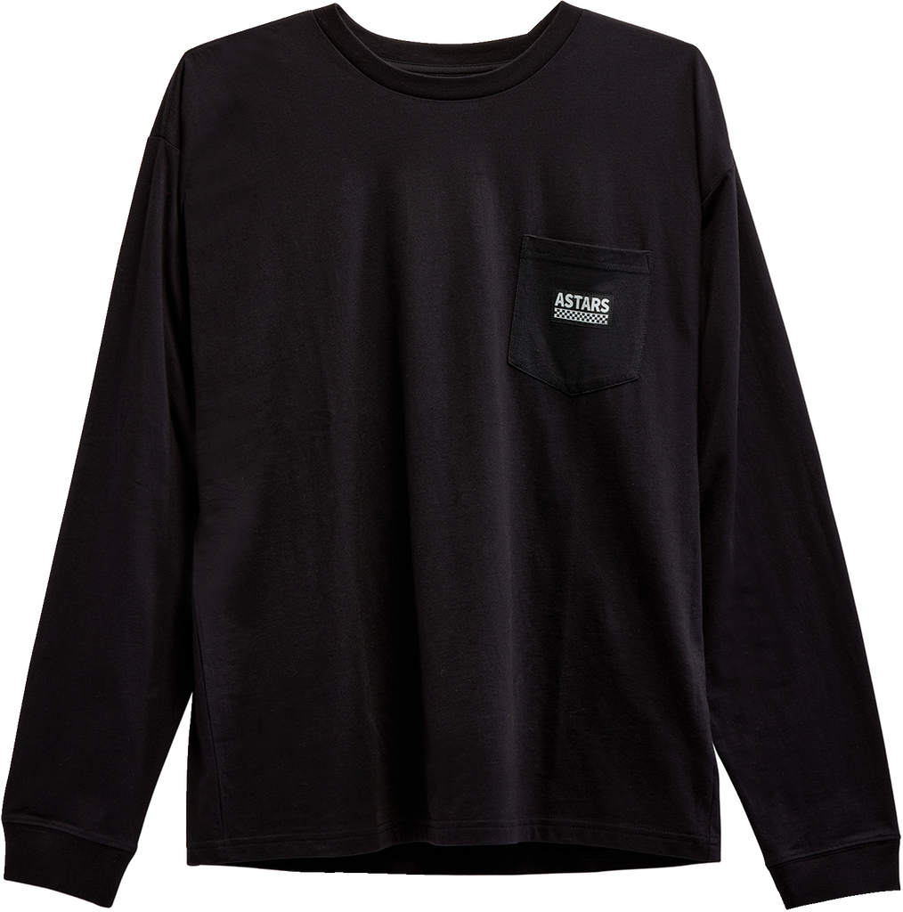 Cirrus Long-Sleeve Knit T-Shirt - Black - XL 100% Jersey cotton, Long sleeve crew, knit pocket, rib cuffs, Flock print Astars word on chest, Internal neck print, external labeling