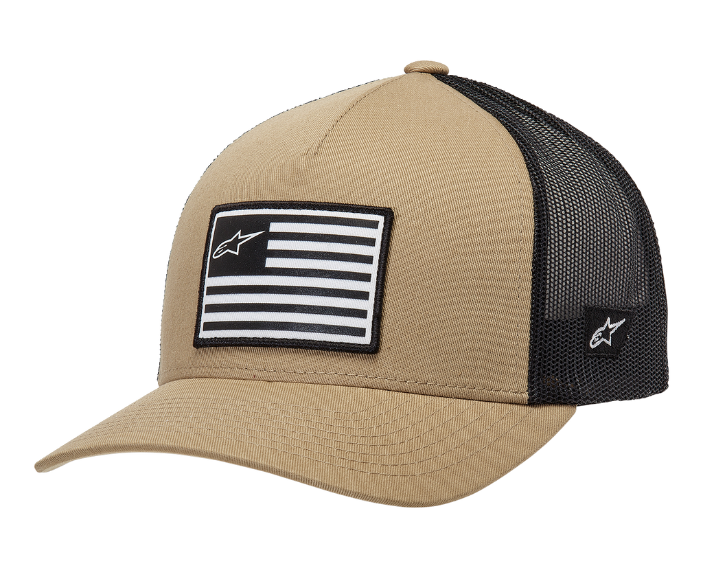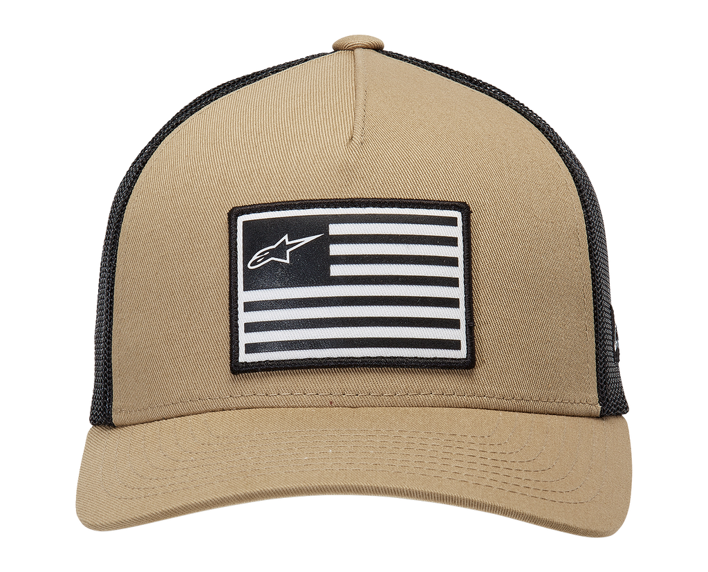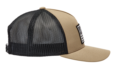 Flag Snapback Hat - Sand/Black - One Size Content: 60% Cotton / 40% Polyester, Front printed patch, side logo flat embroidery, Structured crown and flex back hat, Internal and back labeling