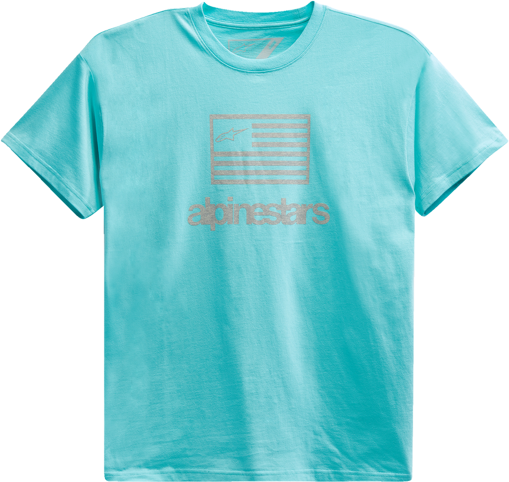 Flag T-Shirt - Light Aqua - XL 100% Combed ring spun cotton, Soft hand heather look print, Front flag and heritage word graphics, Classic printed t-shirt, Internal neck print, external labeling