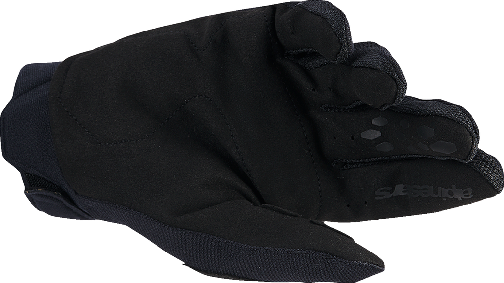 Designed specifically for motocross and off-road enthusiasts, the Alpinestars Full Bore V2 Gloves provide a superior combination of protection, durability, and airflow to enhance your riding experience. The backhand features an advanced TPR knuckle protector that offers effective impact resistance while allowing natural hand movement, ensuring both safety and mobility during high-intensity riding sessions. Crafted from a breathable, reinforced stretch fabric, these gloves maintain an ergonomic fit that adapts to the rider's hand movements for maximum comfort over extended periods of use. The newly engineered TPR knuckle design provides flexible protection without sacrificing dexterity, making them ideal for demanding motocross activities. The upper is constructed from a lightweight, breathable stretch fabric that promotes airflow and reduces heat buildup, keeping your hands cool and comfortable even during intense rides. Reinforced synthetic suede on the palm enhances durability and provides a secure grip on handlebars and levers, while also allowing easy use of mobile devices without removing the gloves. Perforated, reinforced thumb patches improve abrasion resistance and airflow, extending the gloves' lifespan. Silicone print on the index and middle fingers offers an optimized grip on the controls, ensuring precise handling in all conditions. The neoprene cuff with an integrated wrist strap provides a secure, customizable fit that maximizes comfort and flexibility, preventing slippage during vigorous movements. A pull tab with a silicone grip facilitates easy donning and removal, making these gloves practical for quick transitions between riding and other activities. Whether you're tackling challenging trails or competitive motocross events, the Alpinestars Full Bore V2 Gloves deliver the protection, comfort, and durability needed for high-performance riding.