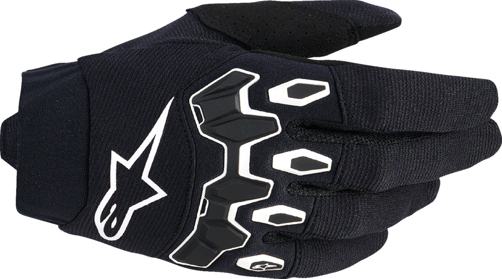 The Alpinestars Full Bore V2 Gloves are engineered for motocross riders seeking high performance, protection, and comfort. Crafted from advanced, breathable stretch fabric, these gloves offer an optimal fit that adapts to the rider*s hand movements, ensuring long-lasting comfort during intense off-road sessions. The upper construction features a ventilated stretch fabric coupled with perforated, reinforced thumb patches that enhance airflow and durability, making them suitable for demanding riding conditions.