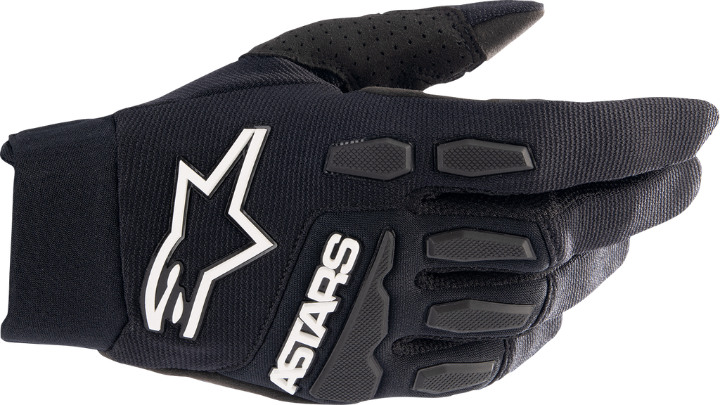 Stretch fourchettes for optimal levels of comfort and flexibility, Reinforced thumb patches for enhanced durability and abrasion resistance, Stretch cuff for an optimized fit with a strap closure , Ergonomic padded palm for optimal comfort on the handlebar/grips for long riding sessions., Upper constructed from a breathable stretch fabric for high levels of rider comfort , Neoprene and TPR on knuckle area offers protection against impacts and possible branches/rock strikes when trail riding