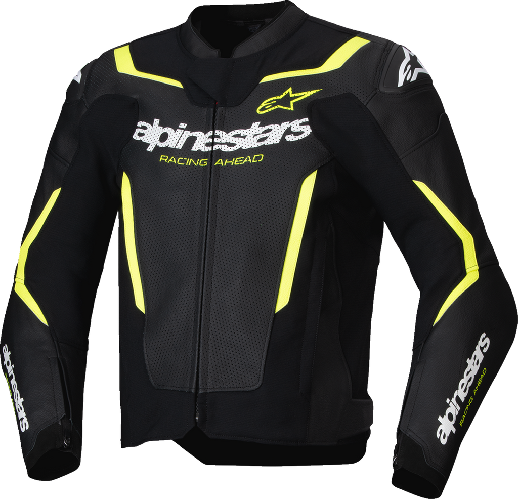 GP Force v2 Airflow Leather Jacket - Black/Yellow Fluo - US 38 / EU 48