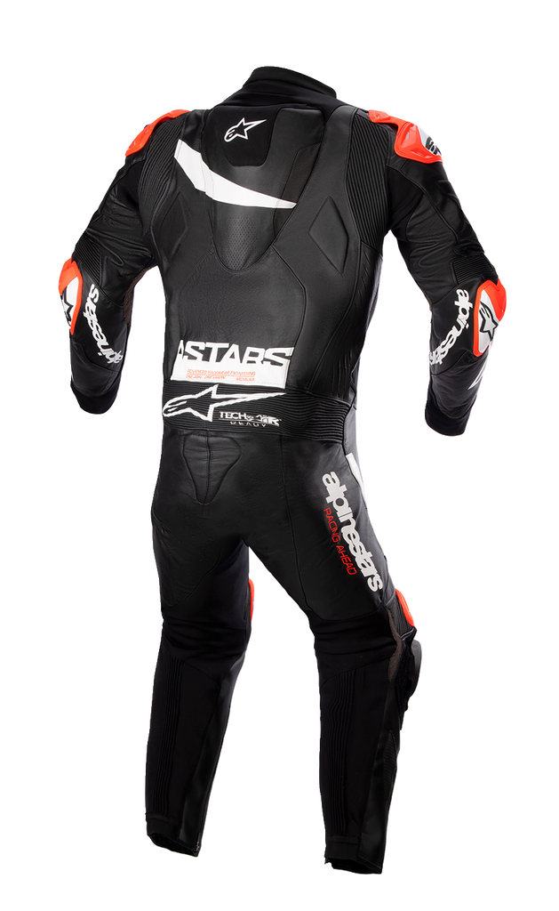 The Tech-Air® Ready GP Plus v4 leather suit is a complete revolution of the existing v3 model featuring an all-new construction including a blend of Flex Plus racing bovine leather, Alpinestars Composite Stretch Plus material, Matryx®, HRSF, and GP DFS sliders perfect for the sport and track rider looking for an upper mid-level suit with the latest material innovations, The GP Plus v4 features new Flex Plus race leather, specially tanned and refined in Italy, ultraflexible Flex Plus race bovine leather that is highly adaptive to the body, supporting a 6% adaptability ratio which is 80% more than that offered by regular bovine leather, the result means that the GP Plus v4 Leather Suit provides unrivalled comfort, feel, freedom of movement and precise fitment, The Flex Plus race leather meets Alpinestars’ Professional racing standard in terms of abrasion and tear resistance, while being 10% lighter than standard bovine leather, With A-CS ® Plus, the stretchability ratio provides 20% additional elongation and tear resistance is increased by 300% versus leather, The GP Plus v4 also incorporates Alpinestars Composite Stretch Plus, A-CS ® Plus, material on the suit’s side torso and shoulder blades, offering lower weight, and increased flexibility and freedom of movement, Perforation of the Flex Plus race leather is provided all over the upper chest, abdomen, and thighs, The GP Plus v4 also incorporates strategically placed lightweight and breathable Matryx ® material panels on the suit’s torso for optimal ventilation, especially when the suit is worn with Tech-Air ® Airbag Systems like the Tech-Air ® 10 or 5, Another benefit of using A-CS ® Plus is that it offers high breathability with a lower weight and lower profile than leather accordion paneling, As for other construction features, the GP Plus v4 has HRSF stretch inserts in the crotch, back of legs, inner arms, and pectoral areas, The suit also incorporates GP DFS shoulder, elbow, and knee sliders for protection, Sporting soft stretch wrist and ankle cuffs the suit also has and a detach - able comfort liner with biostatic Polygiene ® treatment to keep it feeling and smelling fresh, Providing the GP Plus v4’s impact protection, race-proven GP-R elbow, forearm, knee, and shin armor, and Nucleon Race shoulder armor are incorporated in the suit, For the ultimate in rider protection, the GP Plus v4 is also fully Tech-Air® Ready for use with the Tech-Air® 5 or Tech-Air® 10 Airbag Systems and provides a convenient pocket on the forearm for the Tech-Air® 10’s remote LED panel
