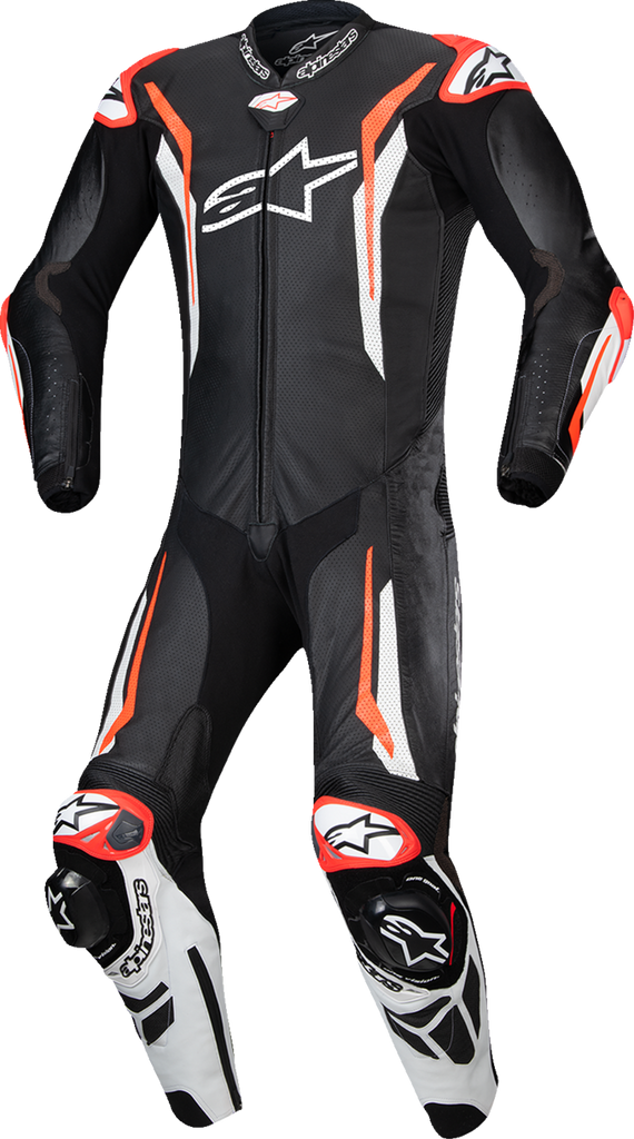 GP Tech v5 1-Piece Leather Suit - Black/White/Red Fluo - US 40 / EU 50