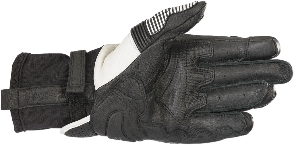 Track-tested advanced knuckle protection system, Patented finger bridge and reinforced leather finger seams for excellent abrasion resistance, Anatomical pre-shaped finger design to increase riding comfort and reduce material fatigue, Short cuff design features extended padded cuff to cover outer wrist area, TPU sliders on little finger and palm heel are mounted on foam-backed leather panels for comfort and performance, Leather reinforced finger seams for superior fit and pre-contoured finger construction to reduce fatigue