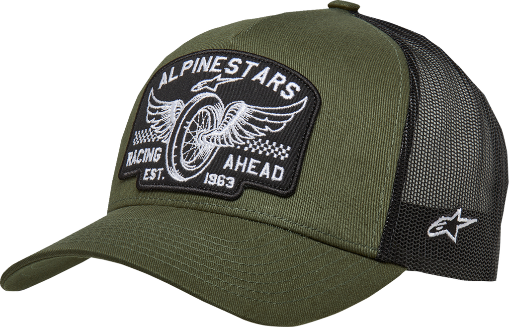 Heritage Patch Trucker Hat - Military/Black - One Size Twill front, poly mesh back fabric with structured crown, Large logo embroidery patch and side Ageless logo patch, Internal and back labeling, 60% Cotton / 40% Polyester