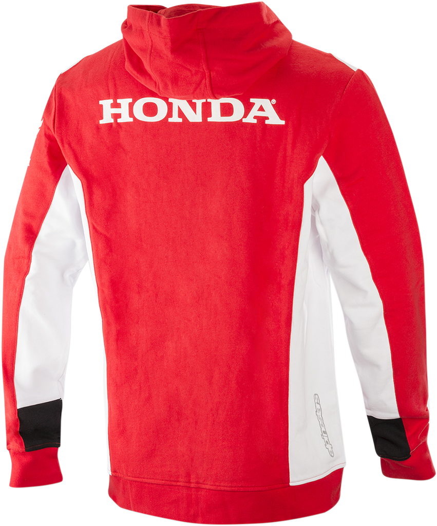 Co-branded hooded zip front printed fleece, Contrast panels zip front body and sleeves, Reverse coil zipper, rib at cuffs and hem, metal eyelets drawcord