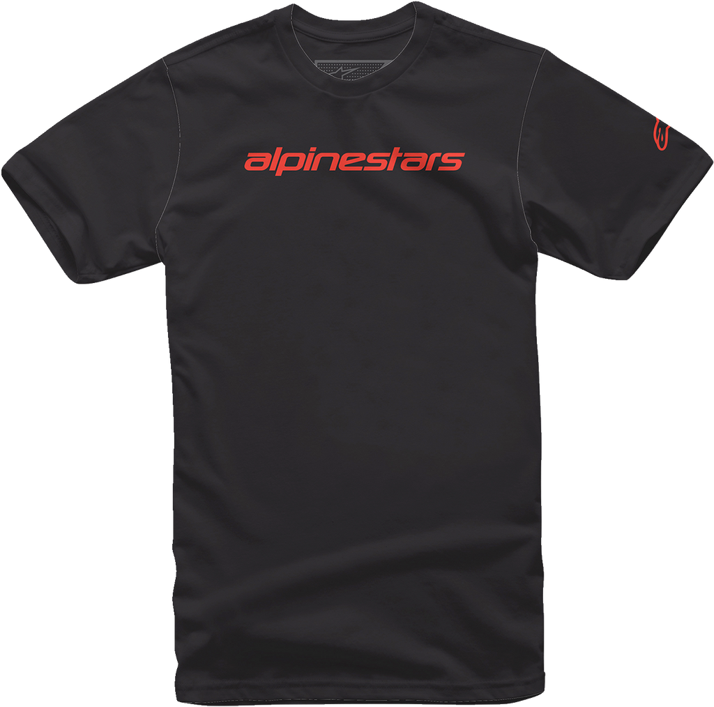 Linear Wordmark T-Shirt - Black/Warm Red - XL 30/1, 100% Combed ring spun cotton, Front linear graphic and sleeve logo with soft hand print, Internal neck print, external labeling