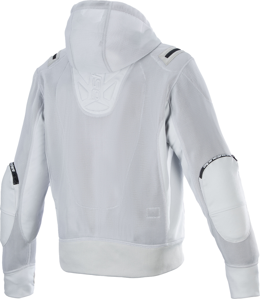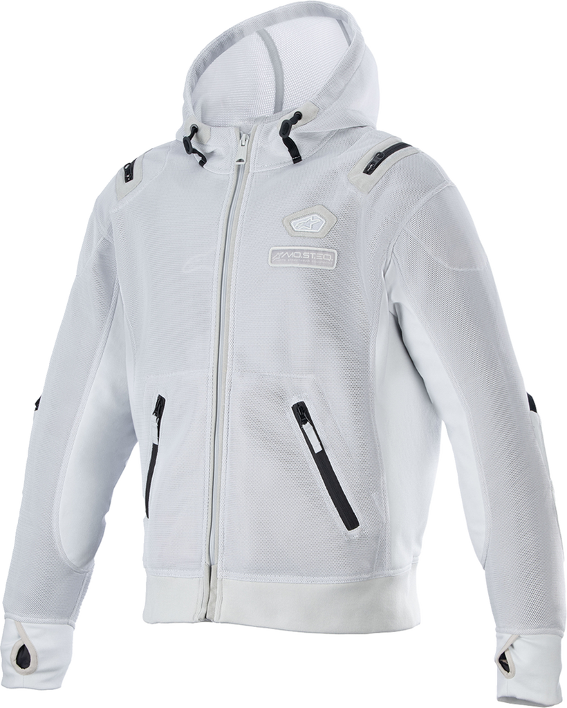 Moflow Air Tech Hoodie is engineered and optimized for maximum airflow for superior warm weather riding performance, and features a lightweight, low-profile design that delivers protection, With full mesh main chassis, this hoodie allows riders to enjoy optimal ventilation, while its utilitarian aesthetic looks great in any urban environment, on and off the bike, Full, high density structural mesh construction for superior airflow and ventilation, Mesh hood with two drawstring adjusters to reduce wind buffeting when riding, Technical stretch insert panels on the full length of the sides and the entire length of the inner arms for enhanced fit and optimum rider comfort, Engineered with no inner lining for optimum light weight and a more streamlined, casual design, Two external hand pockets, and an internal waterproof pocket for real-world practicality, Nucleon Flex Plus, shoulder and elbow armor for superior impact protection, Protective and comfortable Nucleon Flex Plus armor is highly flexible and breathable, and has a thin profile for optimum rider comfort, External compartment for elbow protectors and an internal back pocket for a back protector, all available as optional accessory upgrades, Tech-Air? 3 ready, Elasticated waist for an enhanced fit, Two loops to anchor to Alpinestars pants for a secure fit and the prevention of wind ingress, Diagonal external zippered side pockets for real-world practicality and the safe storage of essentials, Anchoring hole for thumb on the sleeves to keep ensure the sleeves remain in position and do not ride up the arm