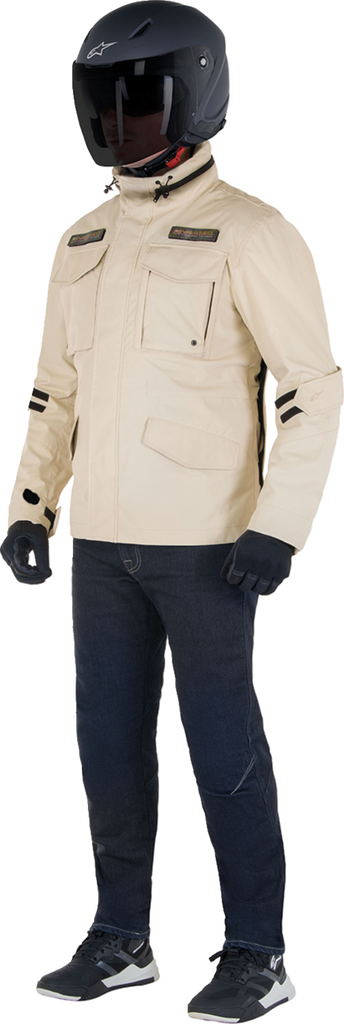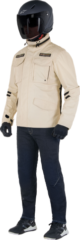 MSE Field Jacket blends contemporary iconic streetwear style with premium material innovation creating a jacket engineered to ride, Designed for racing, featuring a lightweight ripstop main material construction with a built-in waterproof membrane, and highly functional multi-season jacket with great climate adaptability to meet the demands of urban riders both on and off the bike, Removable thermal vest which itself is a stylish garment with a bomber style collar and practical pockets that can be worn on its own, Vest is made from 100% recycled 170g PrimaLoft® insulation material, Nucleon Flex Plus armor, which is externally removable on the elbows, Moto Streetwear Equipment collection truly encapsulates a real connection to the current styles and designs of modern streetwear fashion seen around the world, blending urban style with motorcycling practicality, Large pockets and an external smart chest pocket with internal waterproof compartment designed for practicality to provide the urban rider with the perfect amount of storage, Removable Nucleon Flex Plus armor accessed via external elbow access pocket, Packable lightweight nylon hood integrated into the collar