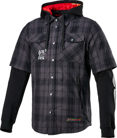 MSE Tartan Jacket is a half shirt, half hoodie riding garment, while providing full protection, Mid-season shirt jacket with short-sleeved look, detachable hoodie and exposed armor on the elbows, Constructed with an internal 9% elastane, 4-way stretch material with attached and exposed armor, and a high-resistance polyamide checkered pattern outer material, Treated with a water-repellant finish for greater comfort and usability in a wider range of climates, Exposed armor, Nucleon Flex Plus armor, perfect for a lightweight, breathable, and discrete look, Features a zippered main closure with external snaps, zippered hand pockets, and an internal waterproof compartment, The shirt has pant connection loops, a sublimated internal mesh liner, and detachable hood to make it practical for every day wear