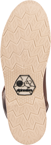 Hand-finished leather upper, Toe box and heel counter internal reinforcement give structured support and impact resistance, Anatomical backed dual-density Thermoplastic Polyurethane (TPU) ankle disk protection, Removable microfiber footbed features anatomically shaped arch and heel with Lycra® top layer for comfort, Rear leather accordion collar for comfort, Heel pull tab designed to avoid catching the pant leg, Plush 3D highly breathable mesh inner liner, Gusseted tongue to keep out wind, water and dirt, Moccasin toe seam scored to add strength, Toe padded and uniquely patterned to work excellently with the gear shifter, Subtle heel for registering the foot pegs, Oil-resistant rubber compound sole with exclusive grip pattern on sole, Metal eyelet lacing closure system