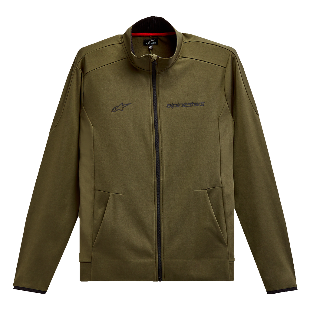 Mock mesh lined collar, semi ergonomic stretch seams and thumb holes , Coil zipper at front, welt hand pockets , Internal main label and external label branding and logo at chest, Layering jacket designed to wear under heavier jackets
