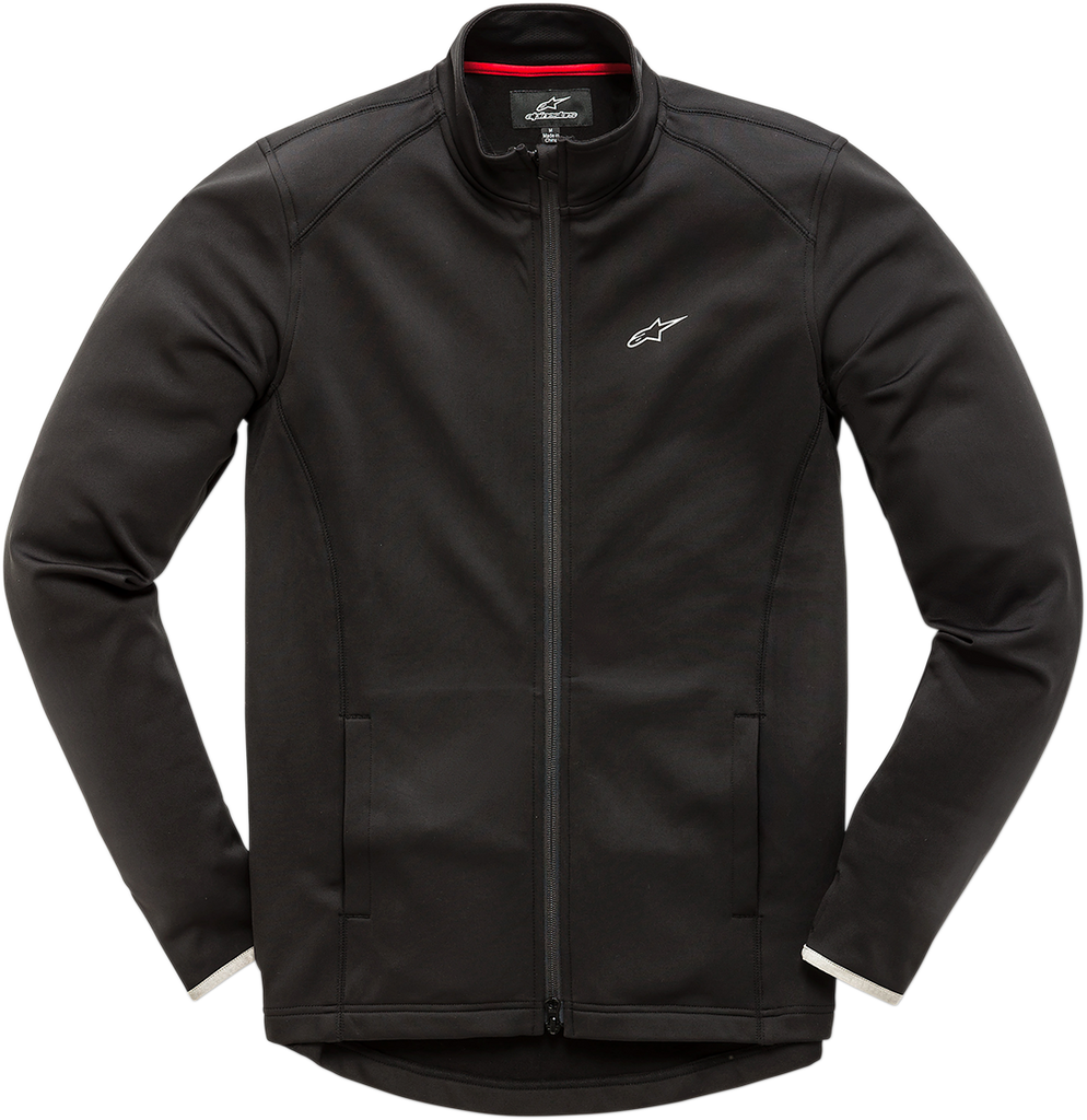 100% Polyester, 250g/m2, Stretch mid layer jacket, Layering jacket designed to wear under heavier jackets, Mock mesh lined collar, ergonomic stretch seams, scalloped hem and thumb holes, Reverse coil 2-way zipper front, welt hand pockets, Internal main label and external label branding, Logo at chest