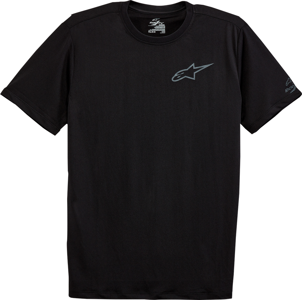 Pursue T-Shirt - Black - Medium Stretch seam construction and a premium performance fabric, Alpinestars print logo on chest and back, Ride Dry print logo on sleeve, Internal transfer main label and external label branding