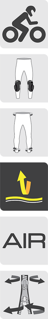 Multi-panel construction featuring 450/600 denier panels with strategically positioned abrasion-resistant airflow mesh panels, Outer shell is reinforced with a PU coating for improved durability and abrasion resistance, Accordion textile stretch inserts on the back of the knees, Removable hip foam padding with hook-and-loop attachments for a secure fit, Zippered and hook-and-loop fastener gusseted lower hem, Full mesh lining and 3D mesh on interior waist for comfort and breathability, External zippered pockets on thighs for convenient storage, Jet Ventilation System (JVS), Reflective details for improved rider visibility, Pre-curved shape for a natural fit when in the riding position, D-ring adjustable waist for a secure, personalized fit, Removable knee and tibia protectors, Waist zipper allows connection to Alpinestars leather and textile jackets
