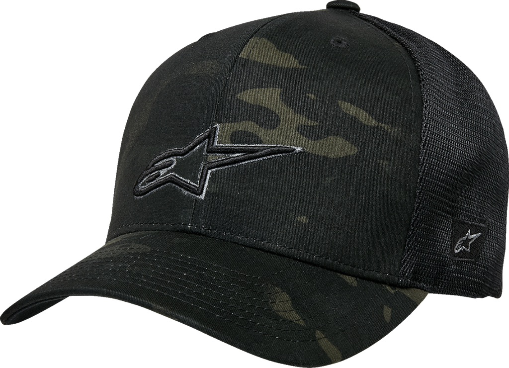 The Alpinestars Recon Trucker Hat features a classic curved bill with a structured crown, providing a comfortable fit and timeless style. Crafted with a camo twill main front panel and a durable poly mesh back, this hat offers both visual appeal and breathability for everyday wear. The 3D embroidered Alpinestars logo on the front adds a bold brand statement, making it suitable for casual outings or active lifestyles. Constructed from a blend of 98% cotton and 2% polyurethane, this hat ensures comfort, durability, and shape retention over time. Internal and back labeling further enhance its quality and authenticity.