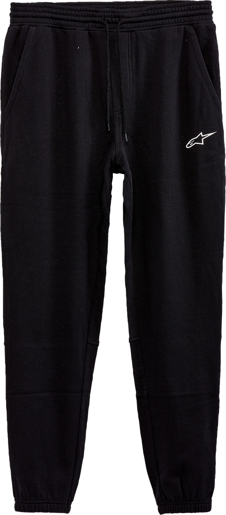 Fleece pant with elastic waist and cuffs, Drawcord waist and faux fly, Angled hand pockets, back welt pocket, and leg seams, Alpinestars screen printed logo on thigh, Internal main label and external label branding, Content: 80% Cotton / 20% Polyester