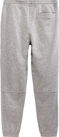 Fleece pant with elastic waist and cuffs, Drawcord waist and faux fly, Angled hand pockets, back welt pocket, and leg seams, Alpinestars screen printed logo on thigh, Internal main label and external label branding, Content: 80% Cotton / 20% Polyester