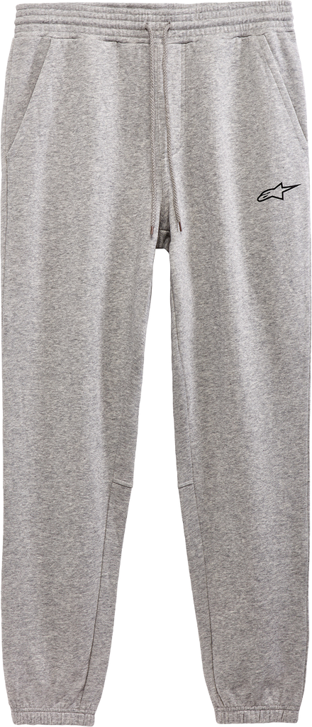 Fleece pant with elastic waist and cuffs, Drawcord waist and faux fly, Angled hand pockets, back welt pocket, and leg seams, Alpinestars screen printed logo on thigh, Internal main label and external label branding, Content: 80% Cotton / 20% Polyester