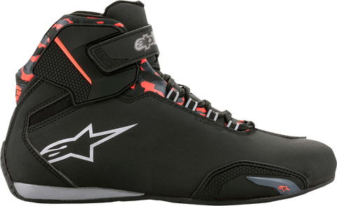 The upper is constructed from a superbly lightweight, durable and abrasion resistance microfiber, Waterproof membrane lining for proven performance in difficult weather conditions, Medial ankle protection for improved fit and a lighter weight, Original speed lace system derived from Auto racing shoes for a personalized fit and feel, Lateral ankle strap provides secure closure and fits within the upper ankle polymer protection panel to ensure a flush finish, TPR lateral ankle protector and slider for more protection and high abrasion resistance, Flex areas on the heel and instep for an enhanced comfort while walking, Small reflex detailing on heel and eyelet area makes the rider more visible to other road users, Internal protective toe-box and heel counter are positioned under the microfiber outer chassis, Extremely lightweight, specifically compounded, rubber sole provides textured grip, excellent absorption and features an integrated support shank for enhanced sole rigidity, Replaceable anatomical EVA footbed with mesh lining on top