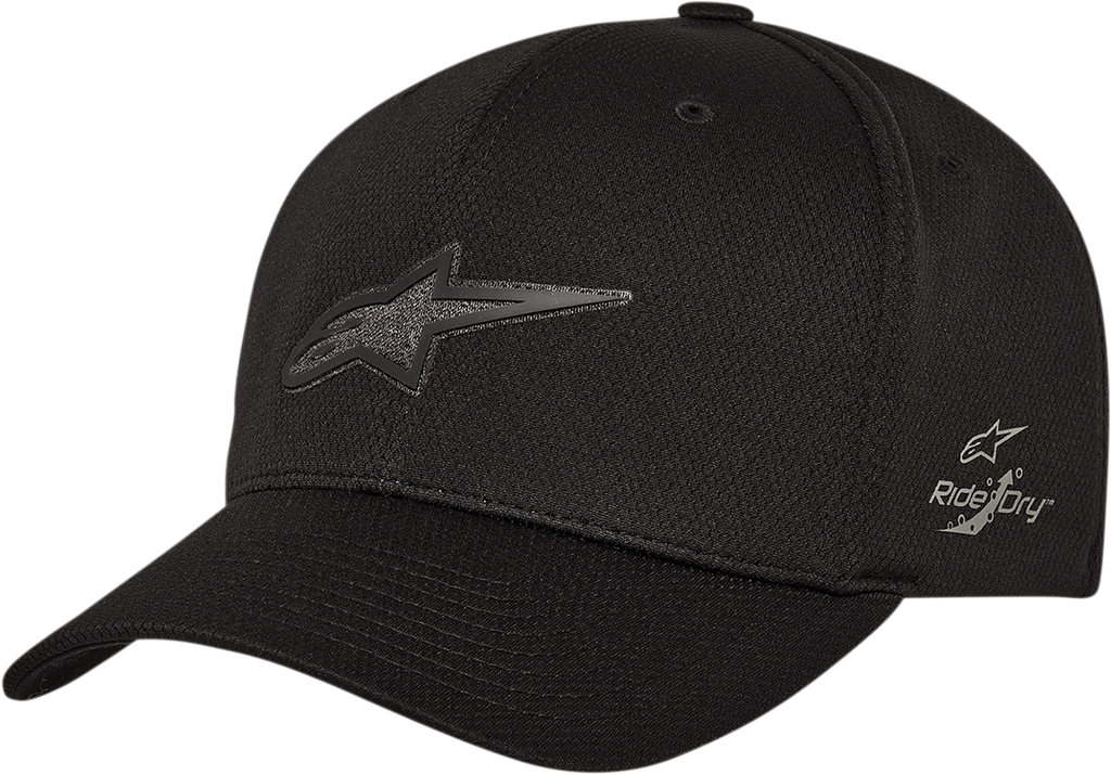 Cool and dry wicking plus water resistant stretch fabric, Flex construction plus snap back for extra comfort and adjustability, Ride Dry logo on left side of hat, 100% Polyester