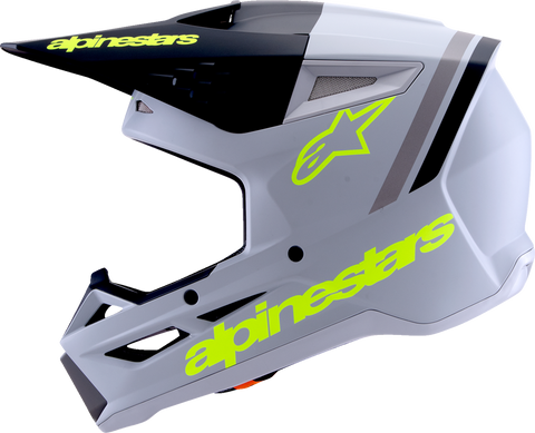The Alpinestars SM3 Helmet Radium features a versatile shell construction with varied thicknesses designed to deliver optimal impact protection while maintaining a lightweight profile. Crafted for motocross, enduro, and offroad applications, this helmet combines advanced materials with innovative engineering to ensure rider safety and comfort. The thermo-injected shell utilizes a polymer blend with varying thicknesses, providing a tailored balance of impact absorption and weight reduction. The impact-resistant outer shell is made from durable thermoplastic, while the inner shell incorporates a composite fiber layer positioned between the outer shell and EPS liner for enhanced protection against impacts. This layered construction helps absorb and distribute energy during a crash, offering superior safety for demanding offroad activities.
