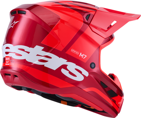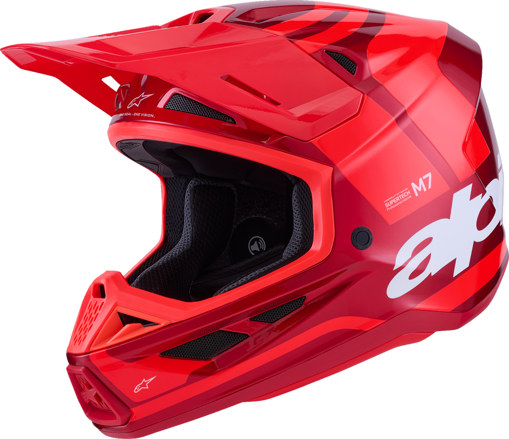 Designed specifically for off-road racing enthusiasts, the Alpinestars SM7 Helmet combines superior ventilation, lightweight comfort, and advanced impact protection. Its aerodynamic composite shell is meticulously crafted to offer a streamlined profile that minimizes drag while providing exceptional durability. The shell's curvature promotes reduced friction during impacts, allowing energy to be efficiently deflected away from the rider's head and neck, thus enhancing safety in high-intensity racing conditions. The helmet features a visor detaching system engineered to release upon impact energies exceeding 15 Joules, ensuring maximum protection regardless of the impact direction.
