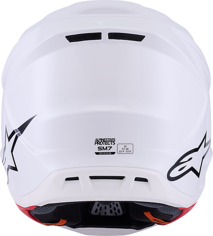 The Alpinestars SM7 Helmet is engineered specifically for off-road racing enthusiasts seeking optimal protection, ventilation, and comfort in a lightweight design. Its aerodynamic composite shell features a sleek, streamlined profile that reduces air resistance and minimizes impact load points, ensuring maximum durability and safety during high-intensity activities. The curved shell design promotes energy deflection on impact, effectively transferring forces away from the rider*s head, neck, and spinal column for enhanced injury prevention.